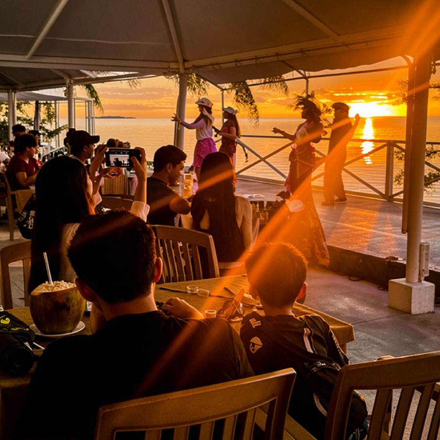 선상위에서 즐기는 석식, 음악과 풍경을 즐기면서 여행을 마무리 합니다.